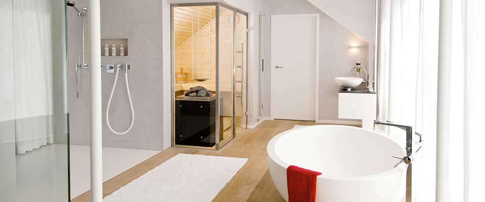 Dank der vielfältigen Gestaltungsmöglichkeiten lassen sich die Saunas aus dem Hause B+S Finnland Sauna je nach Gusto individuell an die gegebenen Räumlichkeiten anpassen. Dabei gibt es viele Gründe, die gerade für das Badezimmer als den optimalen Standort für die Sauna sprechen. In der Regel sind hier bereits alle benötigten Wasser-, Strom- und Abwasseranschlüsse vorhanden. Unnötig weite Wege zur Abkühlung nach dem Schwitzen entfallen. Oft liegt auch das Schlafzimmer für die anschließende Entspannungsphase in unmittelbarer Nähe.